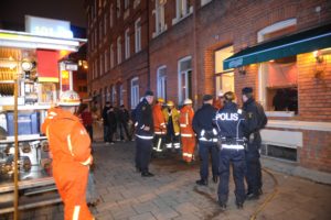 Brandkåren larmades vid 00.30 tiden till en lägenhetsbrand på Kristianstadsgatan i Malmö. Både gäster och personal på en restaurang uppmärksammade att det kom rök från en närbelägen lägenhet och larmade brandkåren. Brandkåren tog sig in i den rökfyllda lägenheten och släckte branden som uppstått i en kabeltrumma. Lägenheten ovanför kontrollerades så att inte brand spridit sig genom golvet. Ingen person var hemma i den branddrabbade lägenheten.