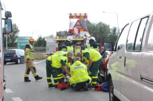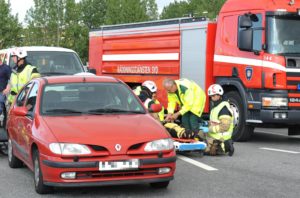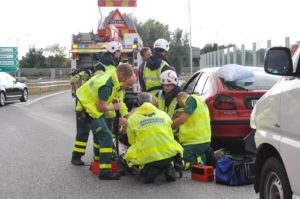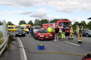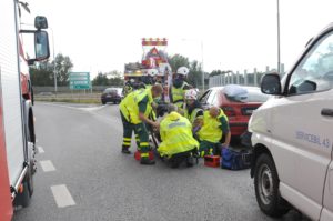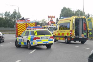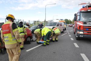 En kvinna fördes till sjukhus efter det att hon i Lindeborgsrondellen blivit påkörd bakifrån av en annan bilist vid 17.15-tiden. Kvinnan togs ur bilen av brand- och ambulanspersonal på en specialbår.