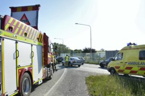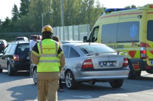 Mindre trafikolycka mellan två personbilar i Lindeborgsrondellen vid 18.10-tide. I nuläget är det oklart om någon person skadades vid olyckan. Mindre köer bildades bakom olycksplatsen då bilarna och räddningstjänsten i inledningsskedet blockerade vägen.