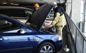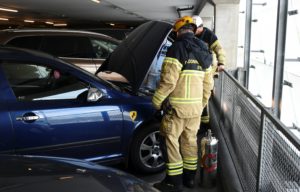 Brandkåren larmades vid 15.15-tiden till en misstänkt bilbrand i Mobilias parkeringshus vid Trelleborgsvägen. När brandstyrkorna kom fram kunde man konstatera att det inte rörde sig om någon brand utan sannolikt någon forn av motorproblem. Bilägaren kunde själv köra ut bilen under övervakning av brandpersonal försedd med handbrandsläckare.
