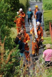 Brandkåren larmades vid 14-tiden till en radhusbrand på Fajansvägen i Oxie. När räddningsstyrkan anlände såg de vad de trodde vara rök komma från taket på ett av radhusen. Efter närmare undersökning visade det sig att det var regn vatten som avdunstade på det varma tjärpapptaket. Solen hade stått på under dagen och sedan kom en regnskur vilken framkallade det ovanliga fenomenet. Efter grundlig kontroll kunde brandpersonalen från de två stationerna lämna platsen.