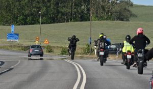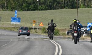 Motorcyklister kör på bakhjulet i Oxie Motorcyklister kör på bakhjulet i Oxie vid E65-an vid 18-tiden på lördagseftermiddagen.
