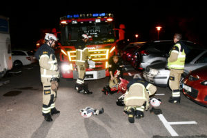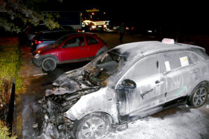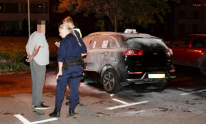 Brandkåren i Lund larmades 01.21 till en brinnande bil på en parkeringsplats vid Norrängavägen i utkanten av Lund. När brandstyrkan kom fram brann det kraftigt i främre delen av en parkerad taxibil. Taxibilen stod relativt ensam på den aktuella parkeringsplatsen och faran för spridning till andra bilar var inte överhängande. Rökdykare med slangledning och pulversläckare kunde snabbt släcka ner taxibilen och sedan efter släcka. Den bedrövade ägaren till bilen pratade sedan ed en polispatrull på platsen. Polisen spärrade inte av platsen denna gången men branden i taxibilen misstänks vara anlagd.