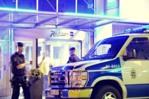 Polis larmades vid 23-tiden till Radisson hotell på Östergatan för att avlägsna demonstranter mot Arab film festival från hotellet. Ett mindre antal demonstranter hade tagit sig in på hotellet för att protestera mot filmfestivalen. Flertalet polispatruller dirigerades till platsen men efter ca 10 minuter hade polisen lyckats att lugna ner demonstranterna som lämnade platsen efter ytterligare en stund.