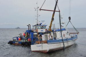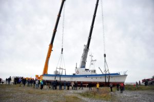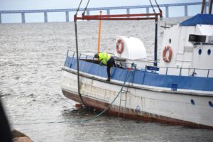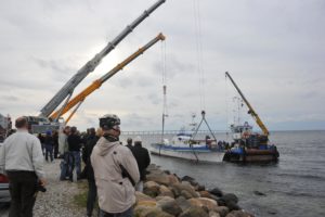 Vid 17.30 stod den skadade turfiskebåten Tumlaren på land efter ett omfattande bärgningsarbete. Två stora mobilkranar började lyfta båten vid 15-tiden men först vid 17.30-tiden var båten uppe på land. Dykare från ett bärgningsföretag hade undersökt botten på båten innan bärgningen påbörjades. Dykarna drog stroppar under skrovet innan man började med lyftet. Flera hundra nyfikna bevittnade bärgningsarbetet ute på Ön i Limhamn under eftermiddagen. Representanter för försäkringsbolaget bedömde tillsammans med ägaren att båten med största sannolikhet kommer att skrotas då skrovets skador var för omfattande.