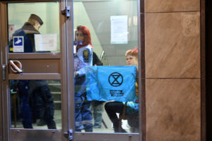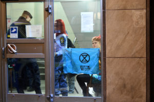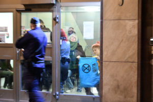 Ordningsvakter och polis omhändertog ett antal klimataktivister efter att de stört kommunfullmäktiges möte i rådhuset vid 17.20-tiden. Vid 17.50-tiden höll polisen på att förhöra aktivisterna i entrén till rådhuset. Exakt vad som sett är i nuläget oklart. Tre polispatruller fans på plats utanför rådhuset vid 18-tiden. I nuläget är det oklart om de omhändertagna misstänks för något brott.
