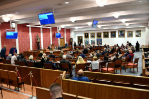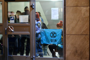Ordningsvakter och polis omhändertog ett antal klimataktivister efter att de stört kommunfullmäktiges möte i rådhuset