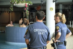 Ordningsvakter vaktar på badhuset Aq Va Kul