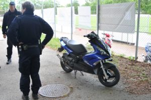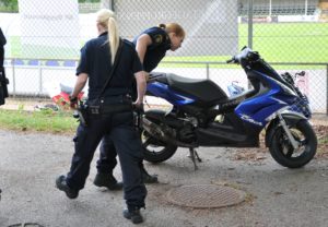 Polisen larmarmades vid 18.30-tiden till en pågående mopedstöld på Grönalundsgatan i Limhamn. En pappa med sin son jagade de misstänkta mopedtjuvarna mot Limhamns kyrkogård. Efter en liten bit fick de misstänkta tjuvarna släppa mopeden som slängdes bakom Bergaskolan, men pappan och sonen fortsatte jakten på de misstänkta tjuvarna in mot Limhamns kyrkogård. Flertalet polispatruller spärrade av Kyrkogården och efter en stund kunde polispatruller gripa två misstänkta inne på kyrkogården. Polisen tog upp en anmälan och sonen kunde få tillbaka sin moped som låg bakom Bergaskolan.
