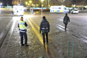 En man attackerade vid 18-tiden två parkeringsvakter vid GAT i Malmö. Parkeringsvakterna ska ha misshandlats med sparkar och slag av den uppretade bilisten. Efter misshandeln flydde mannen i sin bil. Polisen kunde en stund senare gripa den misstänkta mannen på hemadressen. Han greps i bostaden och misstänks nu för nu våld mot tjänsteman.