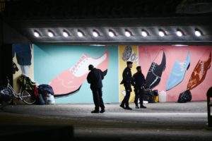Polisen beslagtog vid 01.20-tiden ett femtontal madrasser av de demonstrerande Eu-migranterna vid stadshuset i Malmö. Trots flertalet tillsägelser av polisen under kvällen slog demonstranterna läger i cykel tunneln vid stadshuset. Madrasser lades ut och när polisen kom till platsen vid 01-tiden hade flertalet personer lagt sig att sova på madrasserna. Polisen valde då att beslagta madrasserna då det är förbjudet att campa på den aktuella platsen. Polisingripandet gick lugnt tillväga och vid 00.40-tiden lämnade polisen platsen med de beslagtagna madrasserna.
