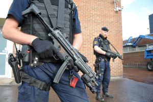 Poliser beväpnade med förstärkningsvapen vaktade under dagen den beskjutna närpolisstationen på Rosengårds centrum. Två poliser med förstärkningsvapen hade placerats på baksidan och två på framsidan. En del Rosengårdsbor blev överraskade av den intensiva polisnärvaron men de flesta hade stor förståelse för polispådraget.