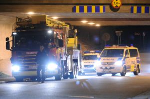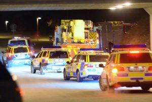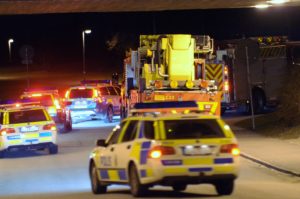 Poliseskort vid sopbrand på Rosengård
