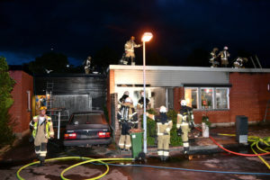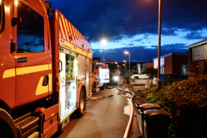 Brandkåren larmades vid 22-tiden till radhusbrand på Östra Häggviksvägen i Höllviken. Enligt uppgift upptäcktes branden av en förbipasserade som bankade på ett av radhusen. Sedan hjälptes personerna i radhuset åt att försläcka släcka med trädgårdsslang innan första brandstyrkan anlände. När första brandstyrkan från Höllviken kom fram brann det i enplans radhusens takkonstruktion. Rökdykare med dimspik och skärsläckare sattes in för släckning. När fler styrkor från Vellinge och Malmö kom till platsen kunde fler rökdykare sättas in för ventilation och nertagning av takpanel. Efter ca 40 minuter hade branden i mellantaket avtagit i intensitet och eftersläckning påbörjades. Brandpersonalen kommer att vara på plats med eftersläckning i flera timmar. Två radhus har utrymts i samband med branden. I nuläget vet man inte hur branden startat.