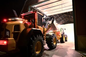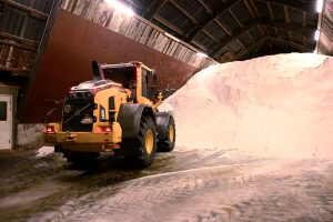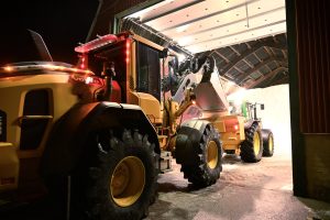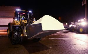 Saltlagret på Hyllie jobbade under kvällen Saltlagret på Hyllie jobbade under kvällen och natten med att före traktorer och lastbilar med vägsalt.