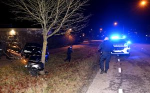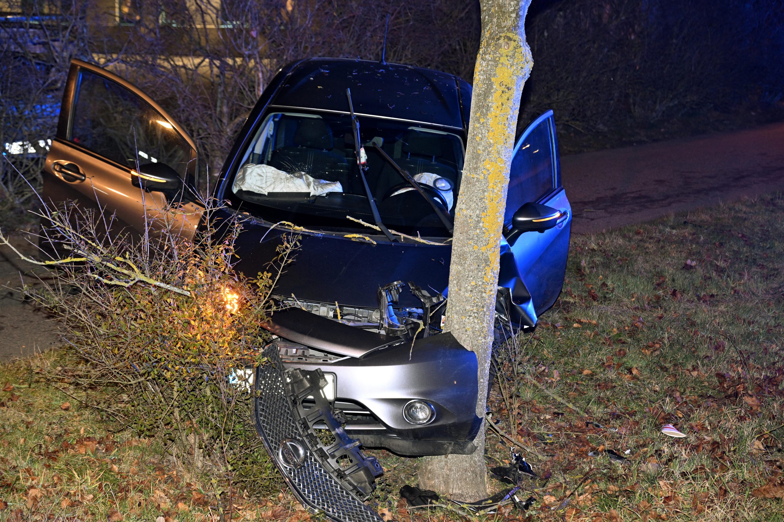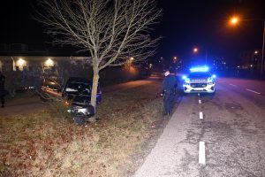 Brandkår ambulans och polis kallades vid 23.44 till en singelolycka på Krossverksgatan i Limhamns industriby. Efter en stunds letande gav räddningspersonalen upp och återvände. Kort senare hittade en polispatrull en bil som kört av vägen och krockat med ett träd. Flera personer hade befunnit sig i bilen men ingen hade skadats. En bärgningsbil fick beställas till platsen då bilen var kraftigt skadad.