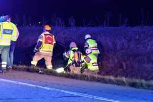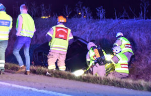 Brandkår och ambulanser larmades vid 17.15-tiden till en trafikolycka på E6-an södergående i höjd med Hököpinge. När räddningsmanskapet kom fram visade det sig vara en singelolycka med en bil som gått ner i diket. Ambulanspersonal tog hand om de personer som befann sig i bilen medan brandpersonalen stängde av en fil på motorvägen. I nuläget är det oklart vad som orsakat olyckan. Långa bilköer bildades bakom olycksplatsen i södergående riktning.