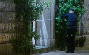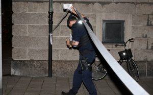 Skjutning mot lägenhetsdörr på Kastellgatan i centrala Malmö i natt vid 23.30-tiden. Polisen larmades av boende i trapphuset som sett vad de misstänkte vara skotthål i en av lägenhetsdörrarna. Polis spärrade först av ett avsnitt av Kastellgatan och sedan drogs avspärrningen ner till bara det berörda trapphuset. Inga personer uppges ha skadats i samband med skjutningen. Polispersonal knackade under natten dörr i den berörda trappan i jakt på vittnen till händelsen. Polistekniker kommer att undersöka dörren och den aktuella lägenheten. Vad som ligger bakom nattens skjutning vet man inte i nuläget.