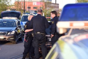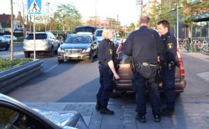 Ambulans och polis larmades vid 20-tiden till Mobilias parkering vid Per Albin Hanssons väg. Enligt uppgift skulle en smitare krockat med bilar på parkeringsplatsen och sedan kört på en person. Efter en stund stod det klart att ingen skadats fysiskt men minst en bil hade fått krockskador. Polisen förhörde bilföraren och upprättade en anmälan om smitning från trafikolycka.