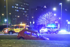 En personbil körde in i rondellen Amiralsgatan i höjd med Ramels väg vid 22.20-tiden. En eller flera personer sprang därifrån in mot området vid Ramels väg. Kort därefter samlades ungdomsgäng vid minilivsbutiken Ramels väg och enligt polisen har det smällts bland annat smällare på platsen. Vid 23.40-tiden bärgades bilen från rondellen medan flertalet polispatruller bevakade platsen så bärgaren skulle kunna jobba ostört.