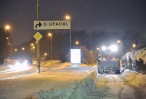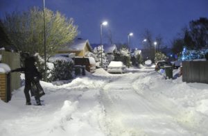 Snöröjning på cykelbana vid Annetorpsvägen Limhamn trots att många av Limhamns gator var obrukbara på grund av snömassorna. Något hundratal meter bort på Abbedissgatan fanns det stora mängder oplogad snö.