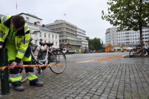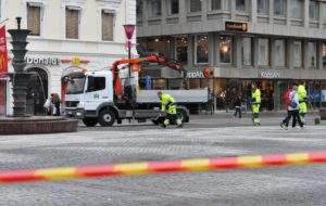 Söndrig renhållningsmaskin läckte hydraulolja på hela GAT och Södergatan i centrala Malmö. Både gående och cyklister halkade i den glashala hydrauloljan. Personal från Malmö kommun städade upp det mesta av oljan med saneringsmedel och sand.