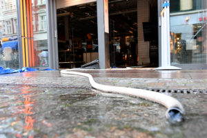 Stadium på Södergatan i Malmö översvämmades och saneringsföretag jobbade mad att få ut vattnet vid 15.30-tiden. Butiken fick tömmas på kunder och stängas för dagen på grund av vattenmassorna.