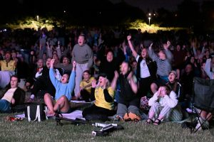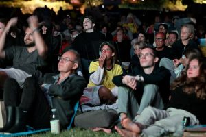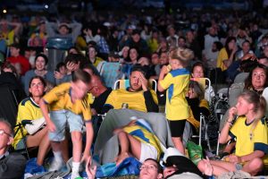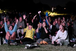 Storbilds TV av den dramatiska kvartsfinalen i Fotbolls EM för damer på Ribersborgsstranden drog ca 2000 personer.