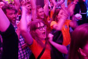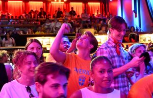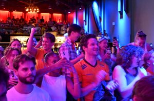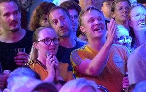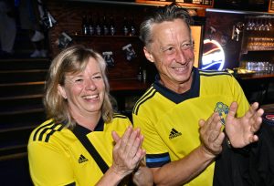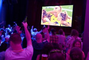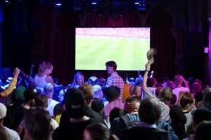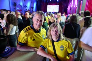 Storbilds TV av kvartsfinalen EM fotboll Sverige mot England inomhus på Moriskan