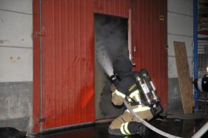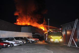 En brand startade vid 02.40-tiden i ett större magasin för olika typer av flyttgods på Lodgatan i Malmös hamnområde. Väktare åkte till magasinet på ett larm och när de anlände brann det ordentligt i lagerlokalen. Brandkåren larmades och när första styrkan från Centrumstationen kom till platsen slog lågor ut från taket och flera styrkor larmades från Malmö och Burlöv. Två rökdykargrupper sattes in för släckning, men efter en halvtimme var hela magasinsbyggnaden övertänd och man fick inrikta sig på utvändig släckning med bland annat en hävare. På grund av rasrisken sattes vattenkanoner in i släckningsarbetet och brandpersonalen fick inrikta sig på att hindra branden från att sprida sig till närliggande byggnader. En större pumpbil sattes in för att trygga vattenförsörjningen då det bara var några hundra meter till hamnbassängen vid Borrgatan. Vid 05-tiden hade byggnaden börjat kollapsa och brandpersonalen flyttade en del fordon som stod i närheten av byggnaden. Vad som orsakat branden är i nuläget oklart.