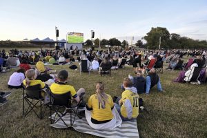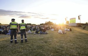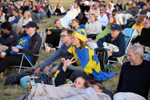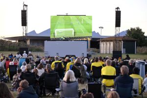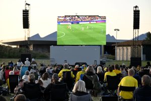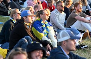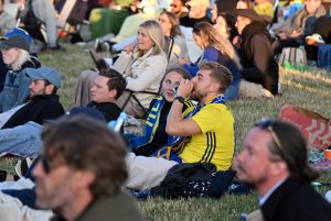 Storskärms fotboll på Ribersborgsstranden. Sverige i EM mot Polen
