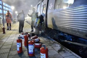 Tågbrand släcktes av tågpersonal på centralen