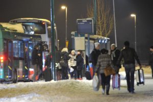 Tågen mot Köpenhamn inställda i kväll Många resenärer släpade bagage i snödrivorna utanför Citytunneln Hylliestationen i jakt efter bussar som kunde föra dem vidare till Köpenhamn.