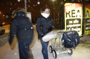 Tidningsbuden hade en svår morgon på grund av snöovädret. Caroline Ekström och Betty Strand körde ut tidningar till tidningsbuden i Oxie och på Ön i Limhamn. Caroline berättar att de kört fast tre gånger men lyckats att ta sig loss. På vissa ställen fick de bära tidningsbuntarna långa sträckor. Flera av deras kollegor som kör ut tidningarna hade kört fast ordentligt och vissa hade krockat.