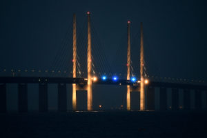 Flera personbilar krockade vid 17-tiden på Pepparholmen mellan Danmark och Sverige. Både dansk och svensk räddningstjänst larmades till platsen. Enligt uppgift skall minst tre personer ha skadats vid olyckan som stängde Öresundsbron i över en timme.