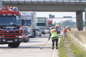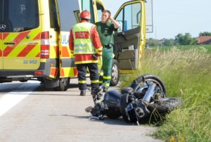 Trafikolycka mellan MC och personbil på E6-an
