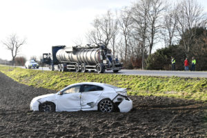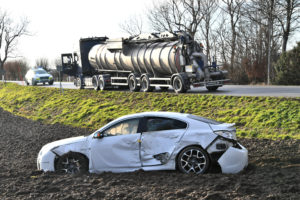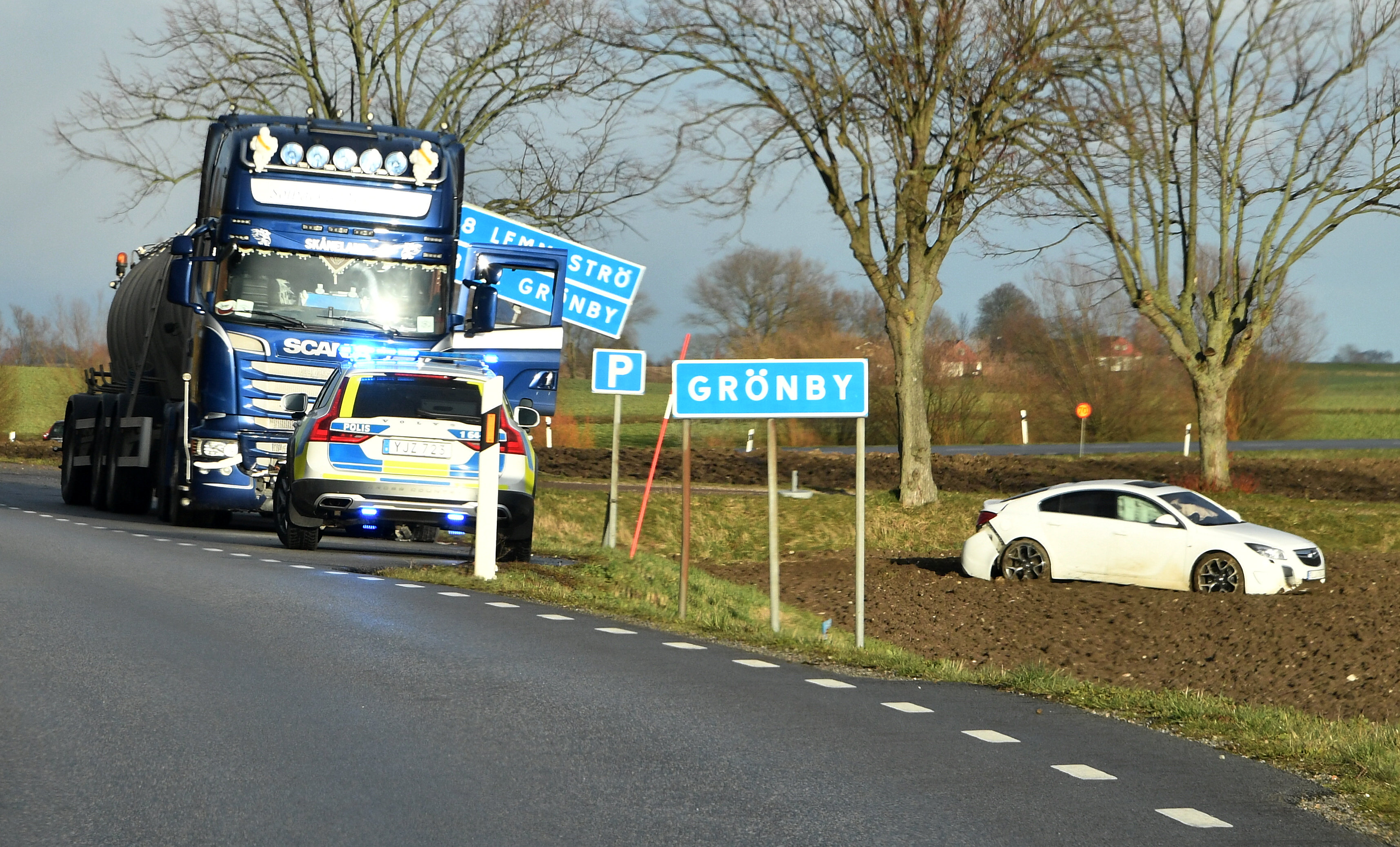 Strax efter 16-tiden kollidera en lastbil och personbil utanför Anderslöv. Personbilsföraren skadades och fick föras till sjukhus med ambulans. Bärgare kallades till platsen för att bärga personbilen som slungats ner i diket. Polisen förhörde lastbilsföraren och vittnen till olyckan på platsen. Vad eller vem som orsakat olyckan är i nuläget oklart.