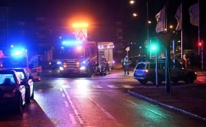 Brandkår ambulanser och polis larmades vid 02.54 till en trafikolycka mellan taxibil och väktarbil i korsningen Mellanhedsgatan och Erikslustvägen. När brandstyrkan kom fram var alla personer ute ur bilarna. Minst två personer fick föras till sjukhus efter olyckan. Enligt uppgift skall en av bilförarna ha kört mot rött i den trafikreglerade korsningen. Efter att brandpersonalen sanerat bildelar i korningen kunde de återvända. Polis kom till platsen och förhörde de två bilförarna.