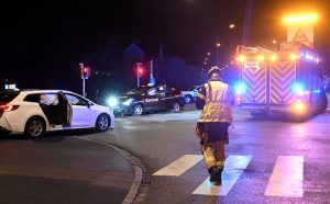 Trafikolycka mellan taxibil och väktarbil på Erikslustvägen i natt