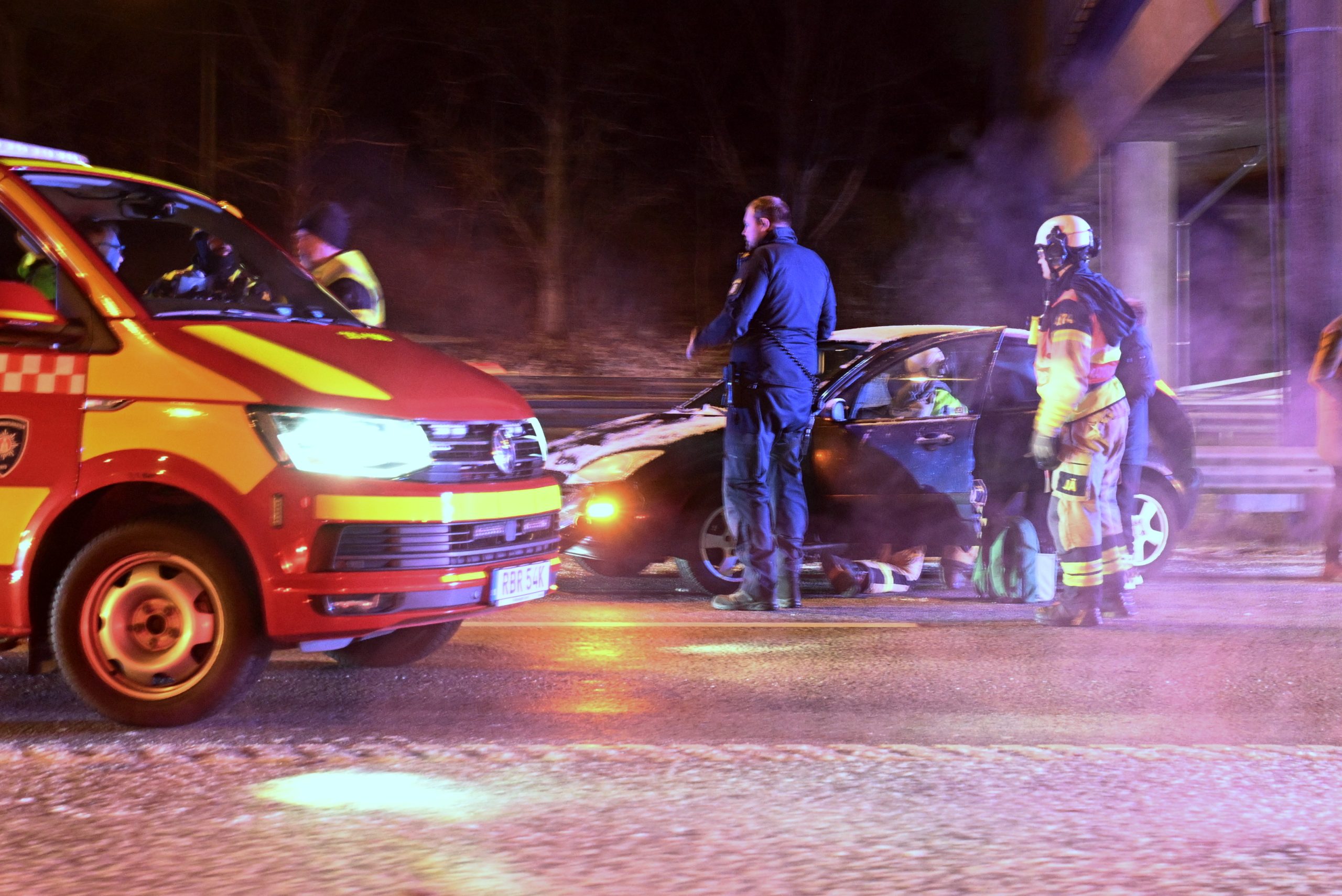 Trafikolycka singel i halkan på Inre Ringvägen norrgående i höjd med Fosiepåfarten