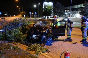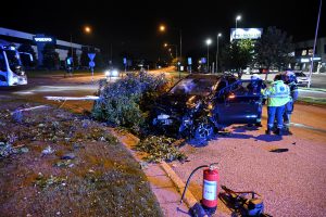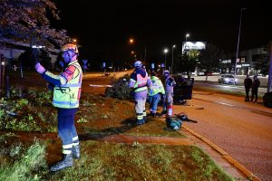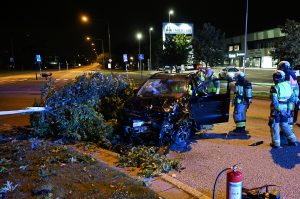 Trafikolycka singel i rondellen Jägersrovägen och Agnesfridsvägen i natt vid 02.30-tiden. När räddningstjänst och ambulanser kom fram kunde man ta ut en skadad person som lastades i en ambulans. Personbilen hade i bra fart gått genom rondellen och knäckt flera träd innan den hamnade på andra sidan av rondellen. Vad som oraskt olyckan kommer nu polisen att försöka utreda.