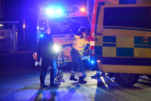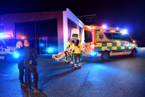 Brandkår ambulans och polis larmades vid 23.37 till en singelolycka med en MC på Krusegatan i Malmö. När räddningsmanskapet kom fram fann man en skadad man ligga på en parkeringsplats vid Krusegatan. En stegbil restes för att brand och ambulanspersonal skulle få ljus vid platsen. Efter en stund lyftes den skadade mannen upp på en bår för transport till sjukhus. När mannen lastades in i ambulansen verkade han få tillbaka medvetandet. Polisen talade med vittnen och undersökte olycksplatsen. Varför mannen vurpat med sin MC på parkeringen kommer nu polisen att försöka utreda.