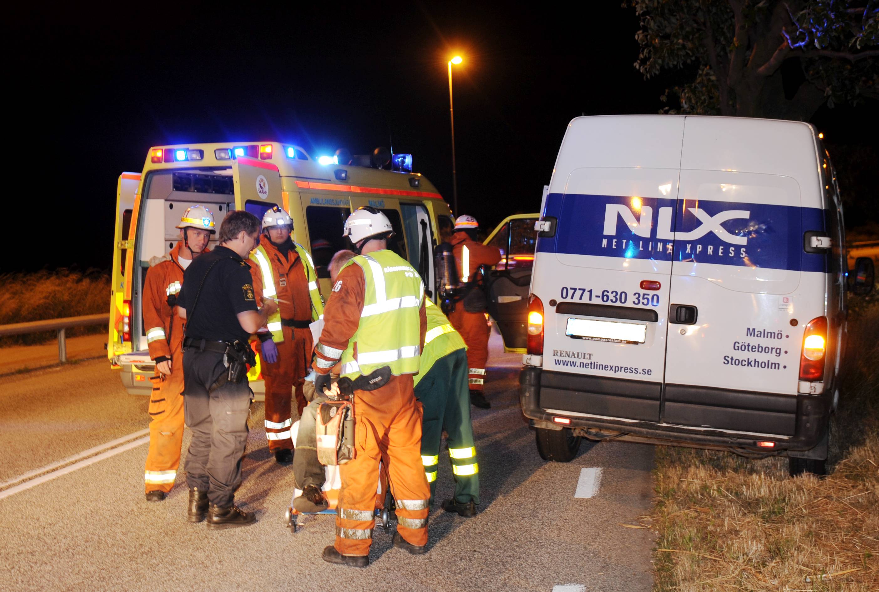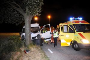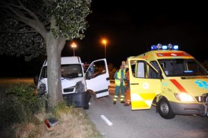 En man körde vid 00.10-tiden av vägen och krockade med ett träd på Malmövägen mellan Burlöv och Lomma. Ambulans förde den skadade mannen till sjukhus och bärgningsbil bärgade skåpbilen som satt fastkilad i trädet. Vad som orsakat olyckan är okänt.