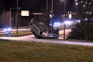 Trafikolycka smitning på påfarten till Inre Ringvägen från E65-an i kväll vid 19.40-tiden. När polis och räddningstjänst kom fram låg en bil på taket men bilföraren hade smitit från platsen. Polis och räddningstjänst stängde av vägen i väntan på bärgningsbil.