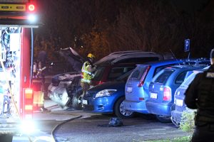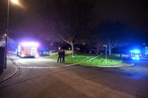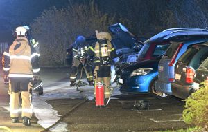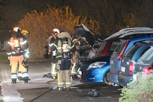 Troligen anlagd bilbrand på Önskegatan i kväll vid 23.35. Rökdykare med pulversläckare och slangledning kunde snabbt släcka ner branden innan den spred sig vidare på boendeparkeringen. Polis kom till platsen och spärrade av ett mindre område runt den brinnande bilen. Polisen på platsen ville inte uttala sig om händelsen. Området har tidigare drabbats av anlagda bilbränder.