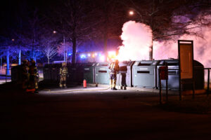 Troligen anlagd brand i återvinningsstationen vid T-Bryggans parkering på Ribersborg