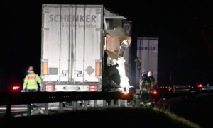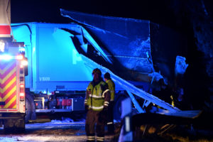 Två lastbilar krockade på E6-an norrgående i höjd med Hofterup i natt vid 23.50-tiden. En postlastbil hade stannat vid vägkanten för att fylla på kylarvätska. När föraren var klar och åter var inne i hytten kom en annan lastbil bakifrån och kraschade in i sidan på postlastbilen. Ingen av lastbilsförarna skadades vid olyckan men skåpen på båda lastbilarna demolerades och massor av försändelser och gods hamnade på vägbanan och diket. E6-an norrgående stängdes av i höjd med Löddeköpinge. I inledningsskedet stängdes även E6-an södergående av i Saxtorp. Under natten kommer bärgare att jobba med de skadade lastbilarna och des last. I nuläget vet man inte hur lång tid detta arbete kommer att pågå.