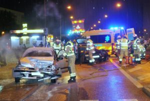Två personer skadades allvarligt vid en smitningsolycka på Eriksfältsgatan i höjd med Professorsgatan Malmö vid 21.50-tiden. De två skadade satt i en personbil som i hög hastighet blev påkörd av en bilist som nyligen smitit från en bensinnota på bensinstationen som ligger på Kvartettgatan några kilometer bort. Polisen var först framme på olycksplasten och fick koncentrera sig på att försöka rädda livet på de svårt skadade i den påkörda personbilen. Föraren och eventuella passagerare i den påkörande bilen hade då redan smitit från platsen. Polisen beslagtog den påkörande bilen som var falskskyltad och kommer att utföra teknisk undersökning snarast. Flertalet vittnen bevittnade den kraftiga kollisionen och vissa kunde ge ett ordentligt signalement på den smitande bilföraren som haltande sågs lämna olycksplatsen. En polispatrull säkrade vissa spår på bensinstationen där bilföraren smet från bensinnotan.
