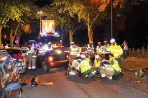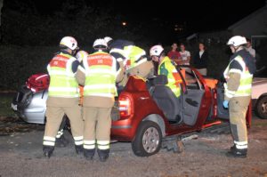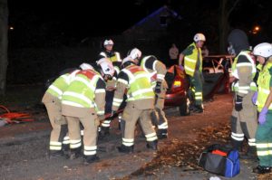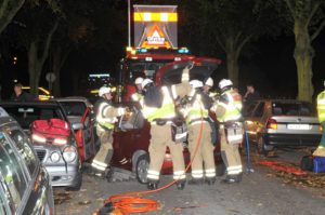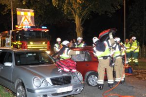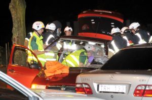 Två personer fördes till sjukhus efter en singelolycka på Vinkelvägen i Burlöv vid 22.30-tiden. Brandpersonalen fick klippa av taket på bilen för att kunna ta ut en av de skadade personerna i bilen på ett säkert sätt. Bilen hade kraschat in i parkerade bilar och demolerats ordentligt. Vad som orsakade olyckan är i nuläget oklart.