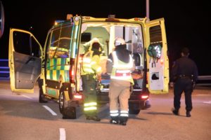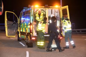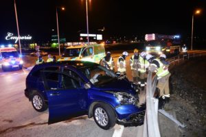 En singelolycka inträffade vid 23.40-tiden i rondellen Annetorpsvägen vid Lorensborgsgatan. En bilist kom i för hög fart och körde in i det förstärkta avbärarräcket mitt i rondellen. Bilföraren skadades och fick föras till sjukhus med ambulans. Brandpersonal sanerade vägbanan och cykelbanan nere i rondellen på bildelar. Polisen på platsen uppger att föraren missbedömt hastigheten.